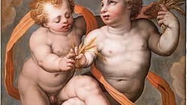 Le coppie di putti, allegorie di estate e inverno, arriveranno da Londra con la Galleria Piacenti ma la loro storia, che pur mantiene un alone di mistero, è stata illuminata negli Stati Uniti: «L’unica mappa per ricomporre i pezzi del cielo perduto in cui fluttuano i soggetti è un disegno preparatorio custodito all’Art Institute di Chicago, a lungo attribuito a Prospero Fontana. Dal 2015 Philip Pouncey e Florian Härb hanno confermato che sia i panelli superstiti che il disegno preparatorio sono di Giorgio Vasari».